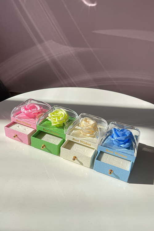 مینی باکس کشویی در رنگبندی جذاب همراه با بگ دستی،گل جاودان معطر،مناسب برای گردنبند،گوشواره،انگشتر،دستبند و نیمست