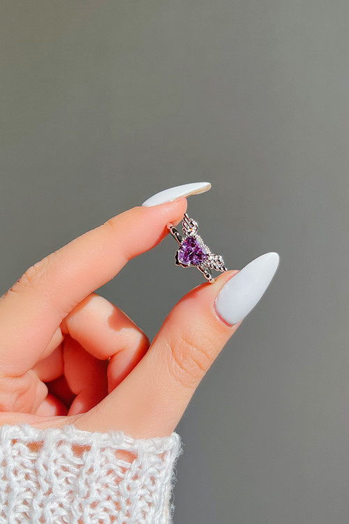 انگشتر دخترانه قلب بالدار تک رنگ جنس استیل و ضد حساسیت فری سایز قابلیت تنظیم سایز از پشت حلقه