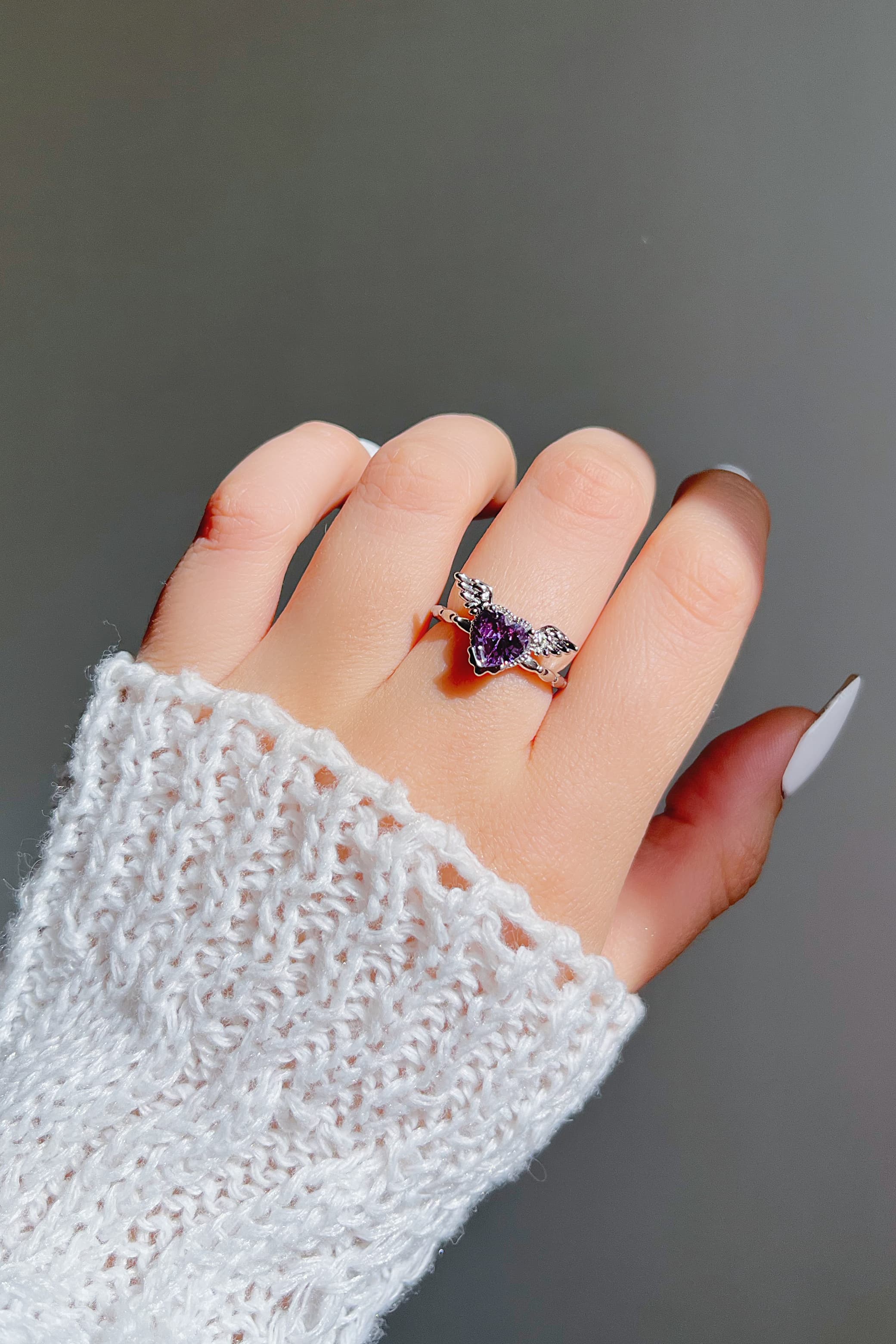 انگشتر دخترانه قلب بالدار تک رنگ جنس استیل و ضد حساسیت فری سایز قابلیت تنظیم سایز از پشت حلقه